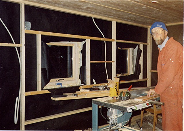 På 90-talet gjenbrukte eg alt eg kunne. Eg likar ikkje å kaste brukbare byggevarer, men det blir nok gjort nå. Altfor mykje å mellomlagre, eg må ha plass å arbeide på.