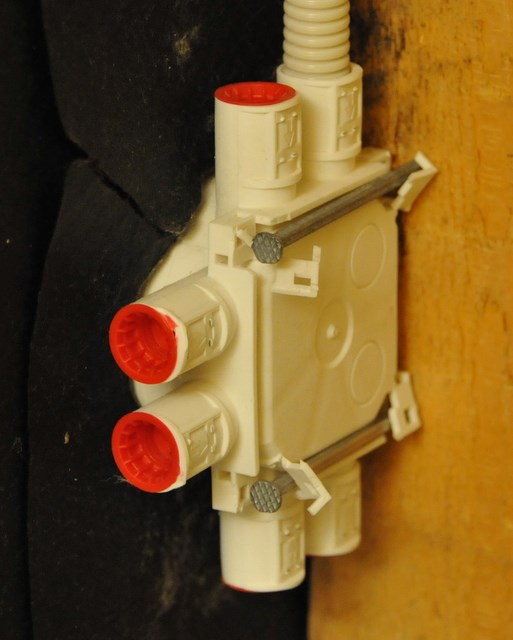 Nå har eg rive panel og isolasjon, underveis fann eg ein veggboks som var dårleg festa, og stikken var ganske lealaus.