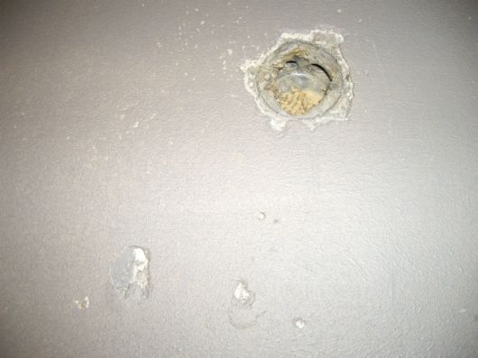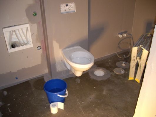 Det er huller i betongen, så det er ingen tvil om at det ikke er gjort noe særlig grunnarbeid - og det er i hvert fall ikke lagt membran.