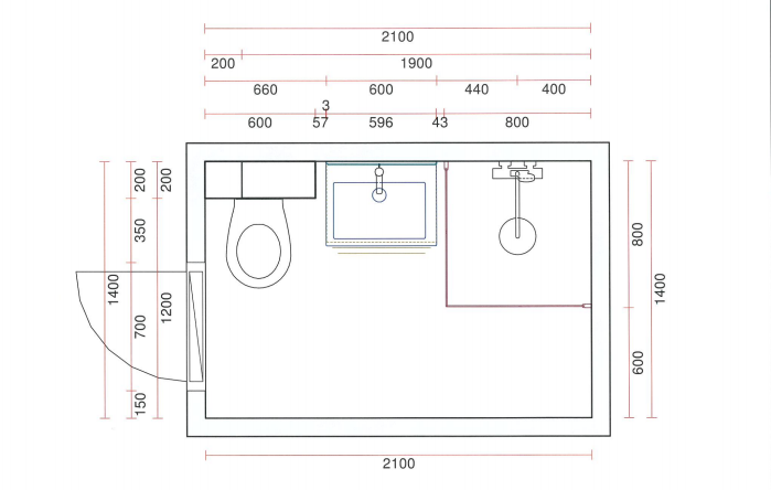 Vi har nettopp fått pusset opp et bad av noenlunde lik størrelse/fasong med rette hev/senk-dører, og der valgte vi en 50 cm smal vask, avrundet og smalere i fronten, for å kunne åpne dusjdøra nærmest vasken litt utover. Samme ting bør man være obs på om man plasserer et skap i nedre høyre hjørne? Får man opp dusjdøra langt nok til å gå inn og ut på passe komfortabel måte? Så lenge man er rimelig slank og førlig går det bra, hvis man ikke velger for stort skap, baderomsskap er jo ofte ikke så dype.