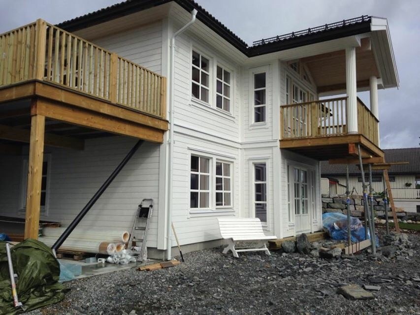 Vi hadde nok ikke valgt denne modellen hvis vi ikke hadde skråtomt. Har sett på flere for flat tomt. Det blir et helt annet hus. Så langt er vi veldig godt fornøyd.