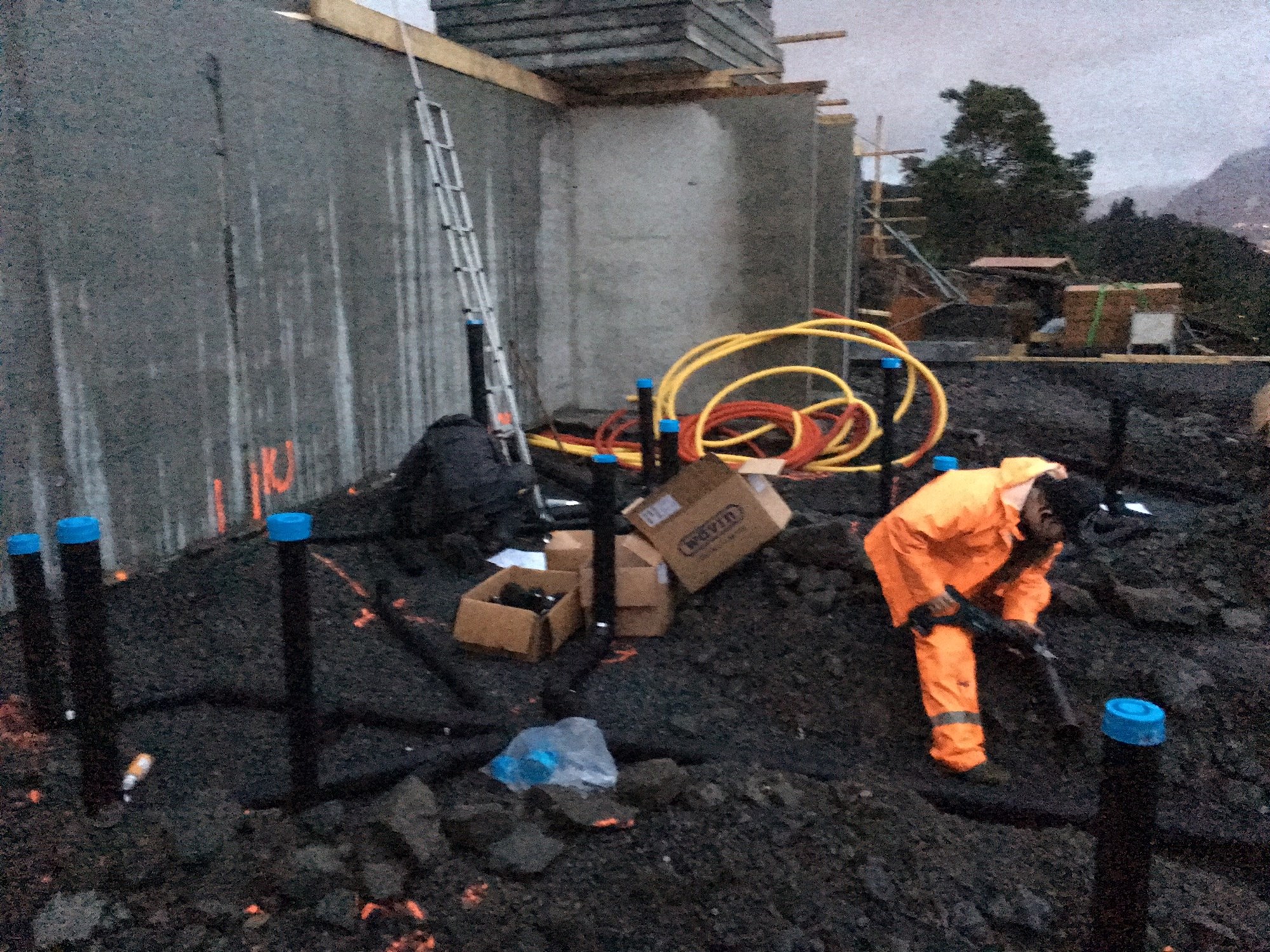 Rørlegger er i gang med bunnledning og elektrikker har lagt inn trekkerør