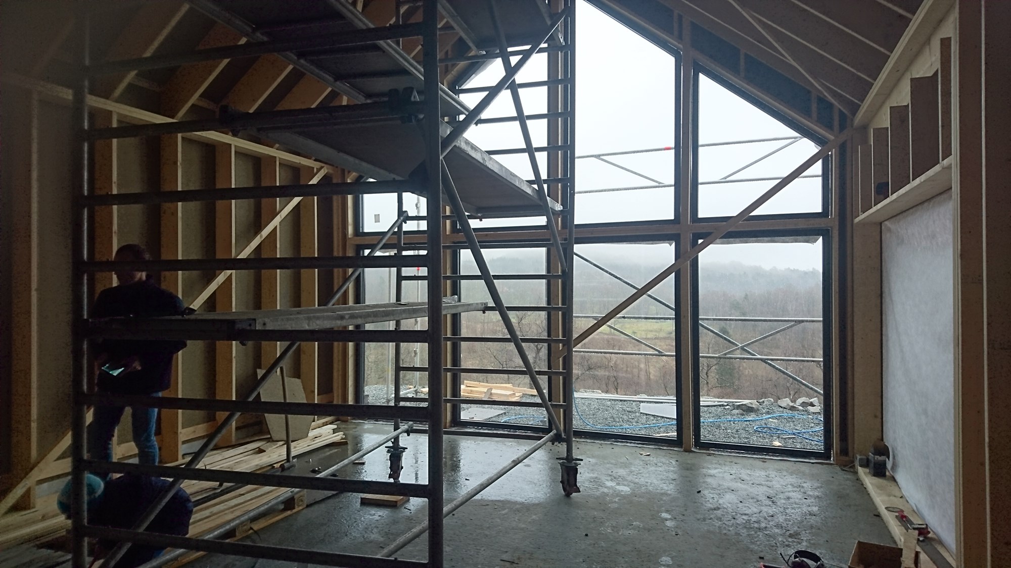 Så gøy å se, det går jo så fort! Dte blir jo et fantastisk rom med den utsikten og store vinduer... Mulig dere har nevnt det, men hvilken husleverandør har dere brukt, eller er det arkitekttegnet?