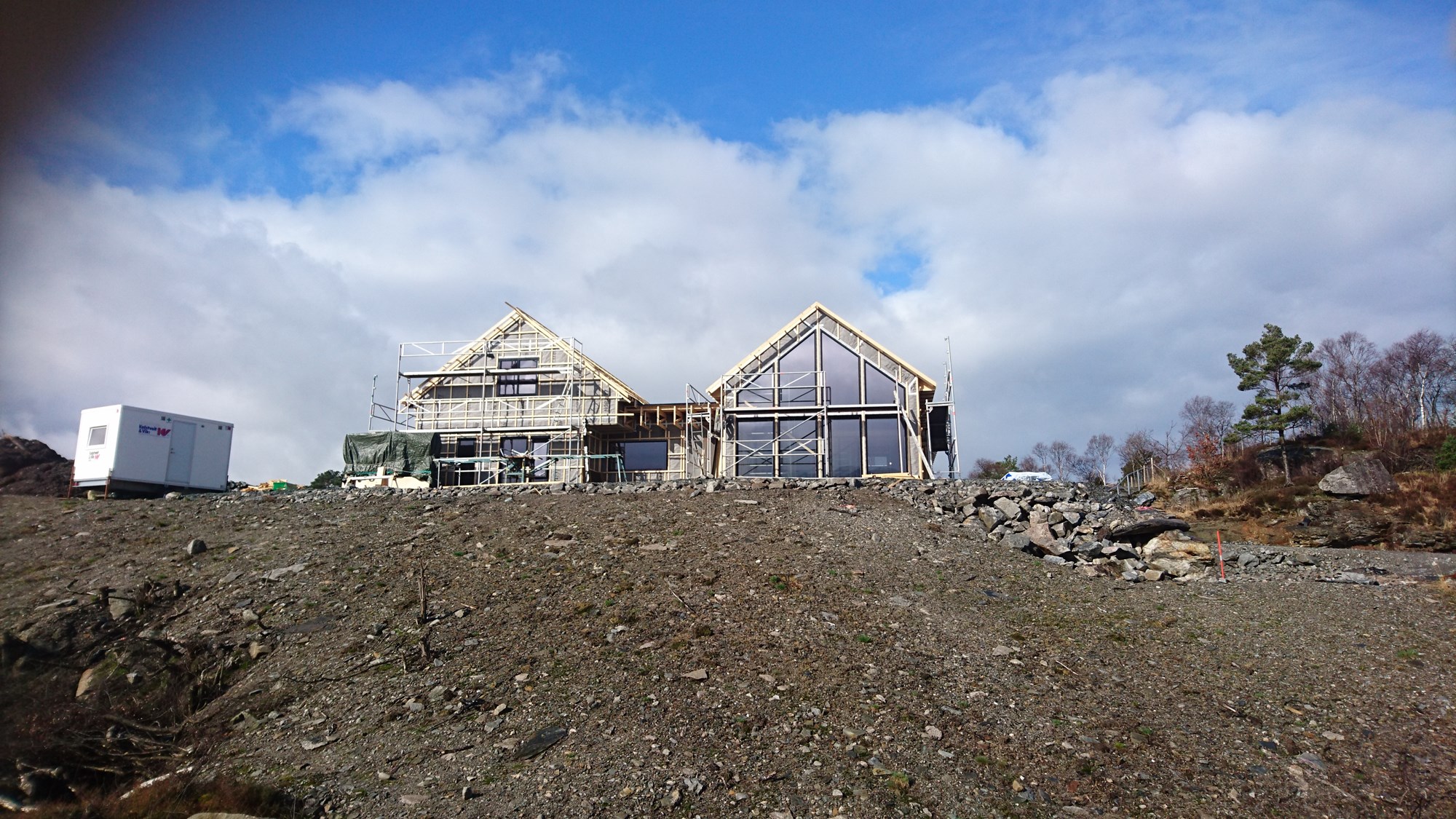 Vi har brukt Mesterhus til å bygge det ( men tatt ut underleverandører og har ansvar for disse selv), men selve huset har vi tegnet selv. Tatt utgangspunkt i tomten, utsikten og solforhold. Og tenkt litt over ulike punkter som betyr mest for oss som;
