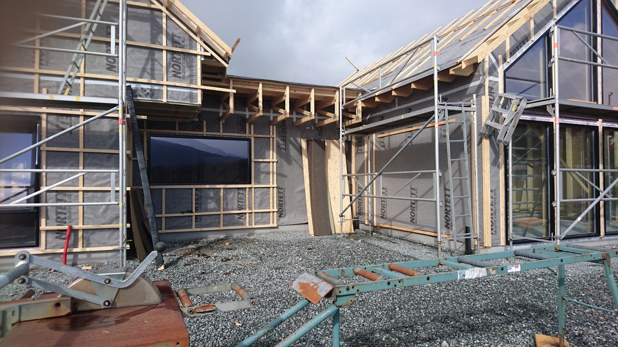 Da har vi vært å fått sett hvordan huset ser ut med vinduene montert. Mangler skyvedørene, så følte stua såg litt tunell-aktig ut. Men, tror det blir bra.