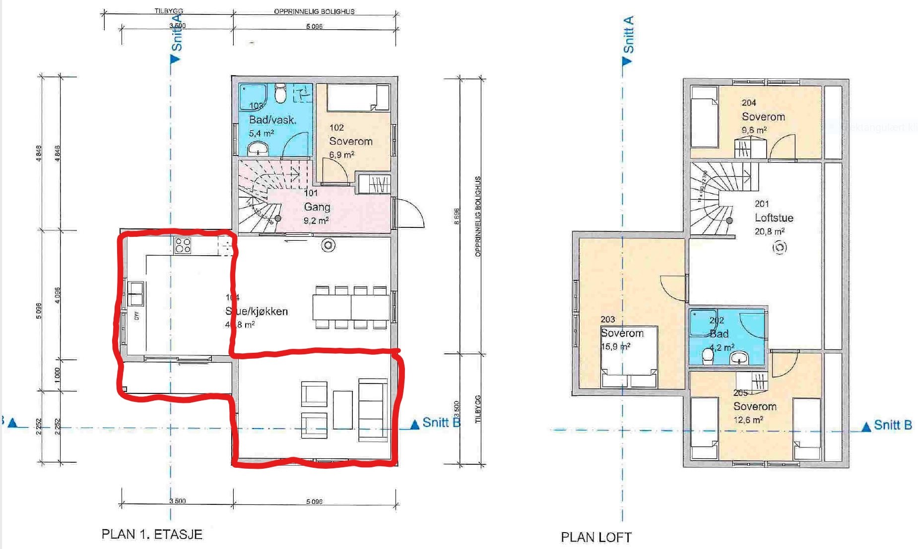Går med planer om å bygge på huset da det er litt lite. Det er tegnet opp og godkjent av kommunen men starter nok ikkje før til våren. Legger ved tegningene så dere får sjå korleis det er tenkt.