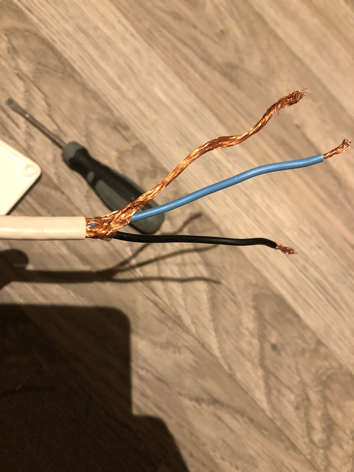 Hei ! Må flytte termostaten til varmekabel i gangen ca 2meter, da eg skal rive og utvide litt. Denne såkalla kaldenden på kabelen blir da ikkje lang nok, hvordan skjøter du denne type kabel ? Går det greit og bruke vanlig PN kabel og koblingsboks, eller må det brukes samme type kabel (flettet jording) <—se bilde