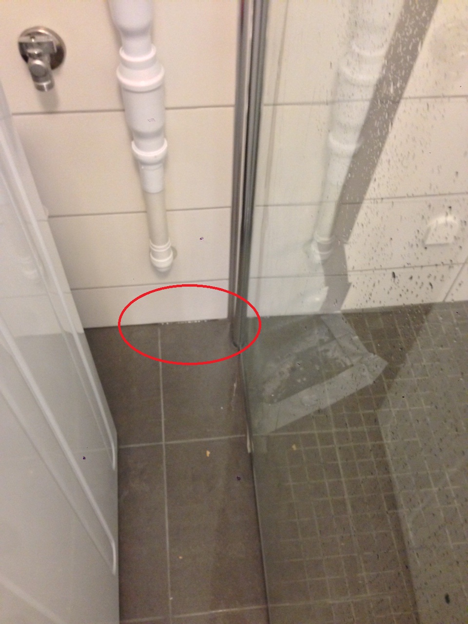 Alt ser fint ut inni dusjen, men jeg har fjernet fugen mellom gulv og vegg fra døren og bort til dusj veggene, når jeg dusjer så kommer det litt vann under kanten hvor jeg har fjernet fugen mellom gulv og vegg ved siden av dusj veggen. Jeg lurer på om dette naturlig eller om det er for mye vann.