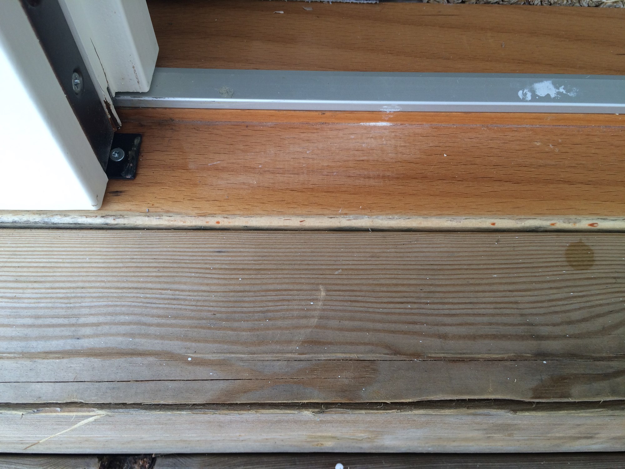I tillegg er jeg litt betenkt i forhold til fukt at denne impregnertlista ligger helt klint inntil dørterskelen. Kommer det da fukt vil det bare bli liggende å trekke etter hva jeg skjønner.
