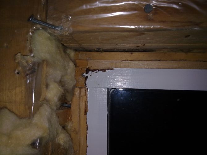 Da må det utvendig tetting til med pappstrimle som man klemmer under lekta til kledning, og vindsperre teip i hjørna der vinduet ligger heilt inntil stenderverk, Nye beslag over vindu som går inn bak kledninga og kan vere ein fordel.