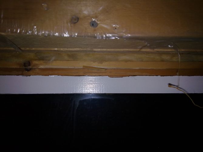 driver å pusser opp tilbygget som er satt opp i -78, og har oppdaget at vinduene er isolert på en ganske slurvete måte.