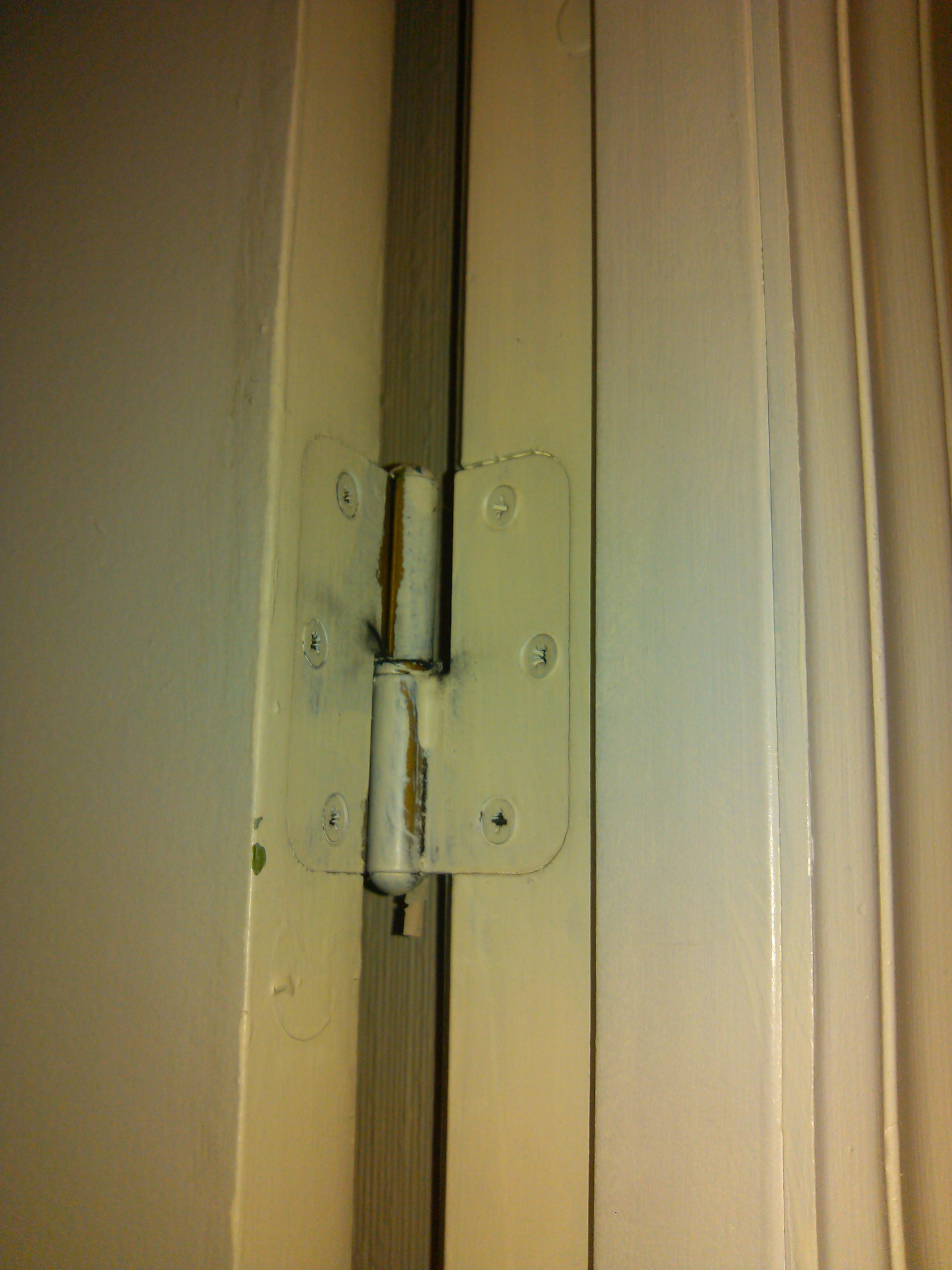 Dagens dører har noe plastikkfester du smetter hengslene inn i.