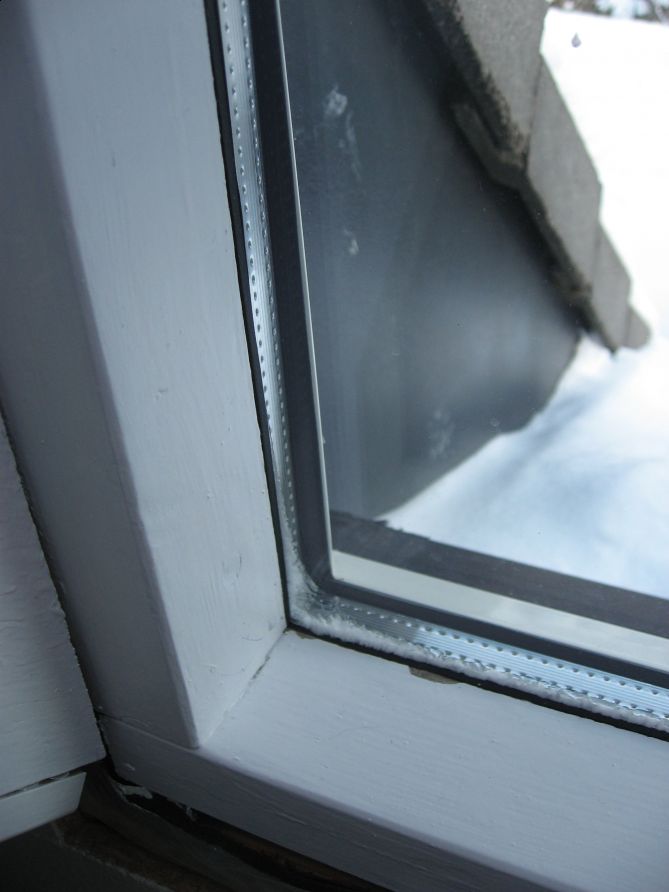 Eg husker at eg monterte det eine vinduet slik at alu.listen(avstandlista) innvendig i ruten skulle flykte med nedre kant på glasskarmen. Burde denne kanten vore lenger nede da eg har skjønt at denne alu. lista fører frost og gassen synker nedover når det er kalt? No er det 16 kuldegrader ute.