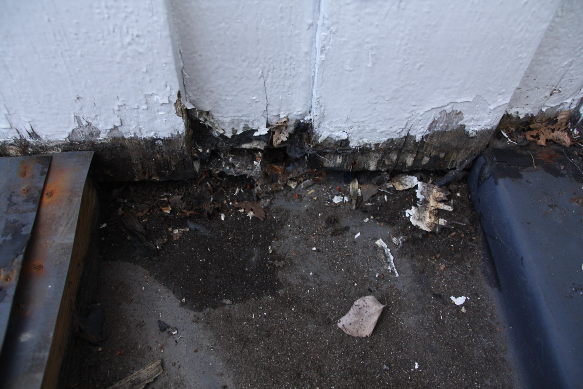 Uff det var ikke særlig å høre. Men det ser jo ikke noe bra ut nederst på kledningen, det må sant sies. Vil det derimot hjelpe når det opprinnelig er et murhus? Det er kledd med panel utenpå murhuset på 1980-tallet. Veggene er en halvmeter tykke og murveggen består av to deler med et lite mellomrom i mellom. Isolasjon både på utsiden og innsiden av murveggen. Huset er godt og varmt om vinteren. Den delen som verandaen med gang inn til kjeller under, ble bygd senere enn huset. Hvis det har noe å si? Hvor mange cm anbefales mellom panel og beslag? Og beslaget skal kun gå under kledningen på hver side av verandadøra, men hvordan blir det seende ut når beslaget stikker ut på hver side? Det står anbefalt noen steder at beslaget bør gå over første terrassebord.