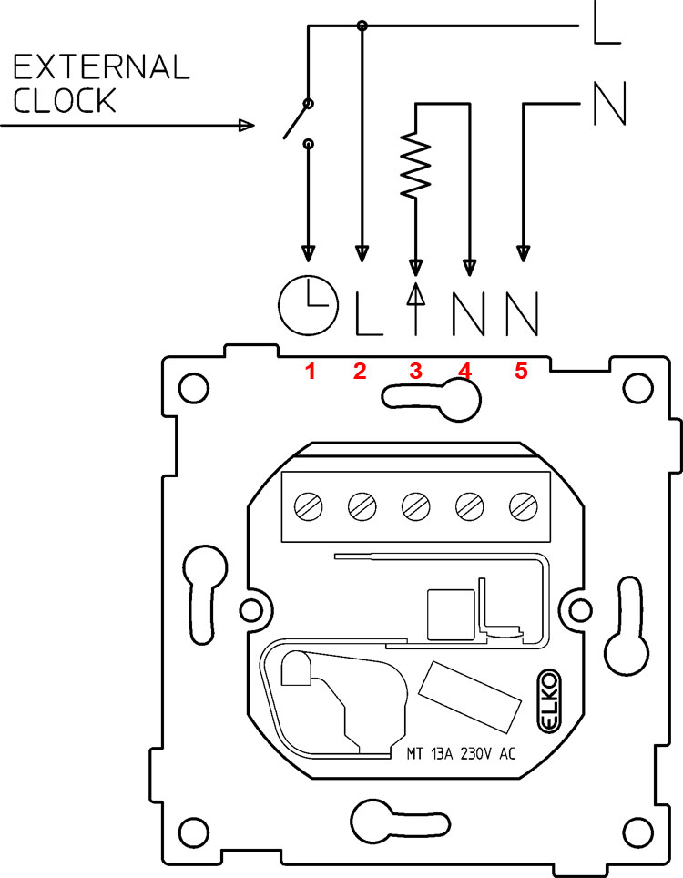 Det jeg er litt usikker på er hvor jeg kobler den blå og svarte lederen til selve varmekabelen. Det kan virke som L skal krysskobles på nr. 2, mens den blå fra varmekabelen skal kobles til nr. 3.