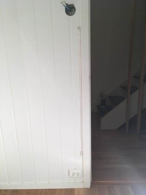Som dere ser av bildene har de etterlatt bade veggpanel og lister med synlige skader.