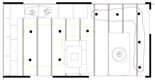 Deretter ville jeg ha plassert downlights slik illustrert på tegning.