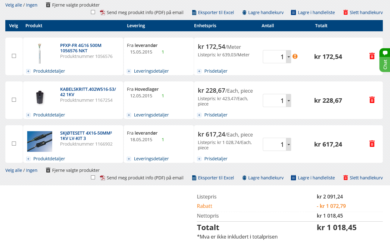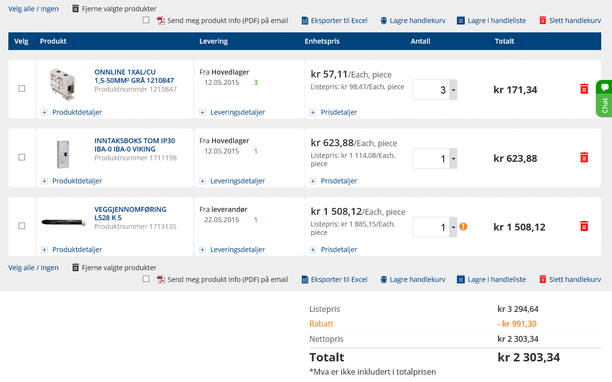 Ang. priser benyttet jeg følgende produkter i beregningen min:
