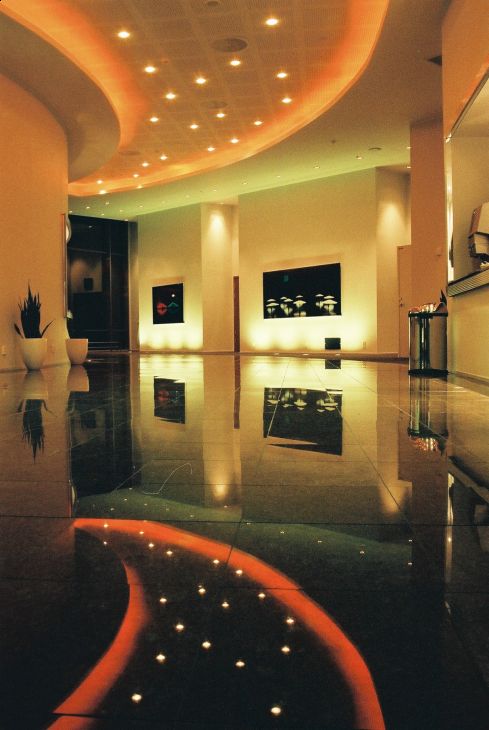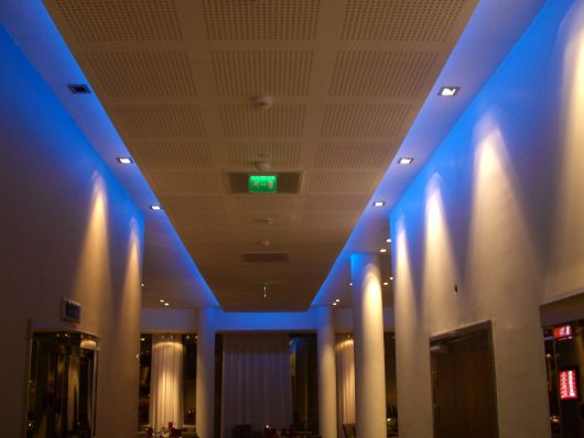 Dette er et prosjekt fra Flesland Hotel. All belysning i denne etasjen er gjort med LED. Det er selvsagt mulig å gjøre det samme med varm hvit led i slisene.