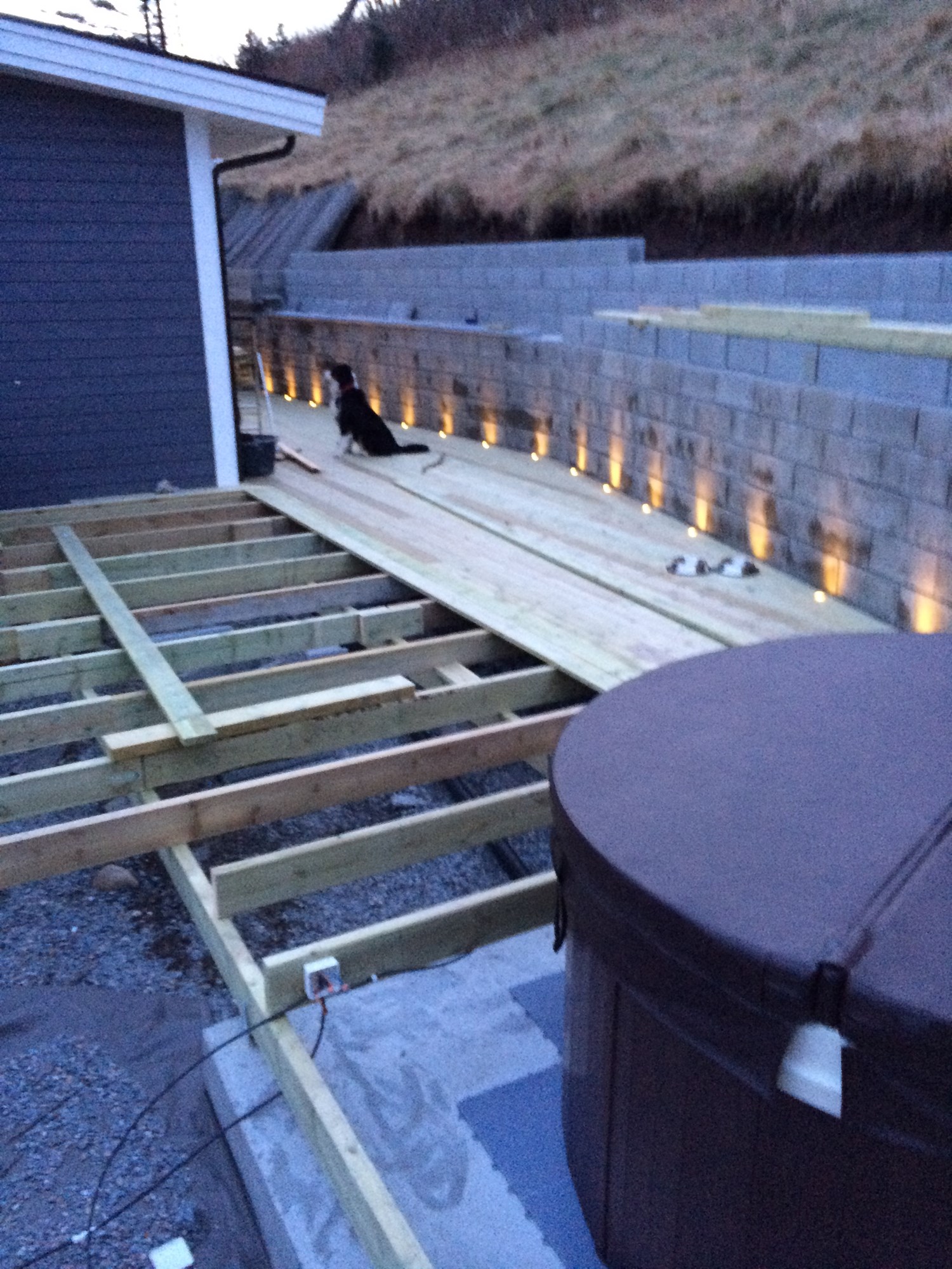 Ja se der. De som er gøy er at vi har en helt make støttemur som jeg hadde tenkt å sette spotter langs slik som du har gjort her.