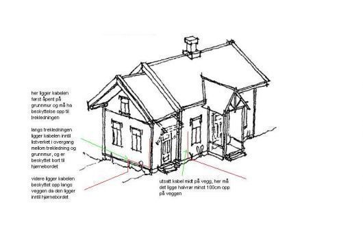 Legger ved en skisse med forklaring over når tid en kabel må beskyttes på veggen.