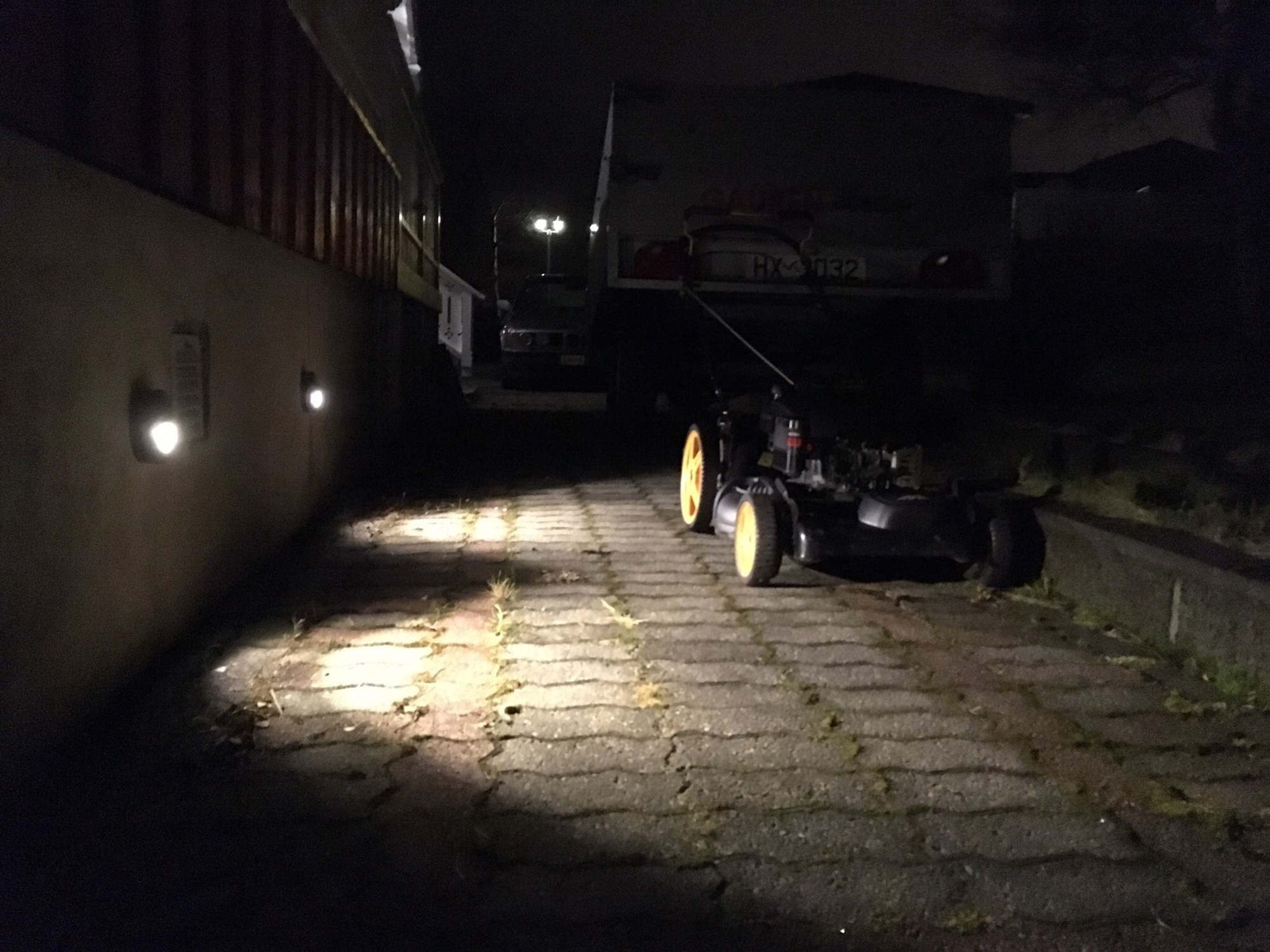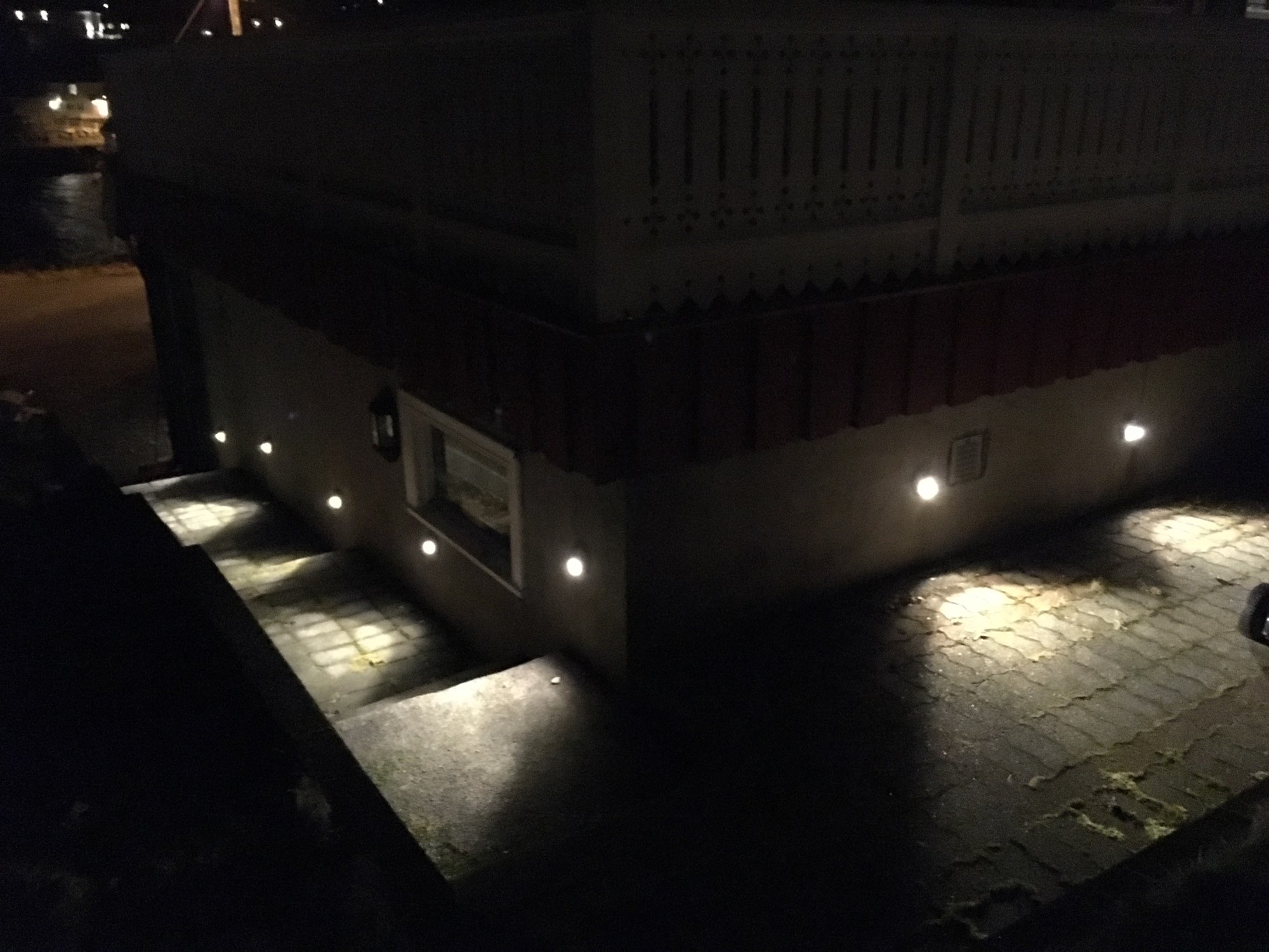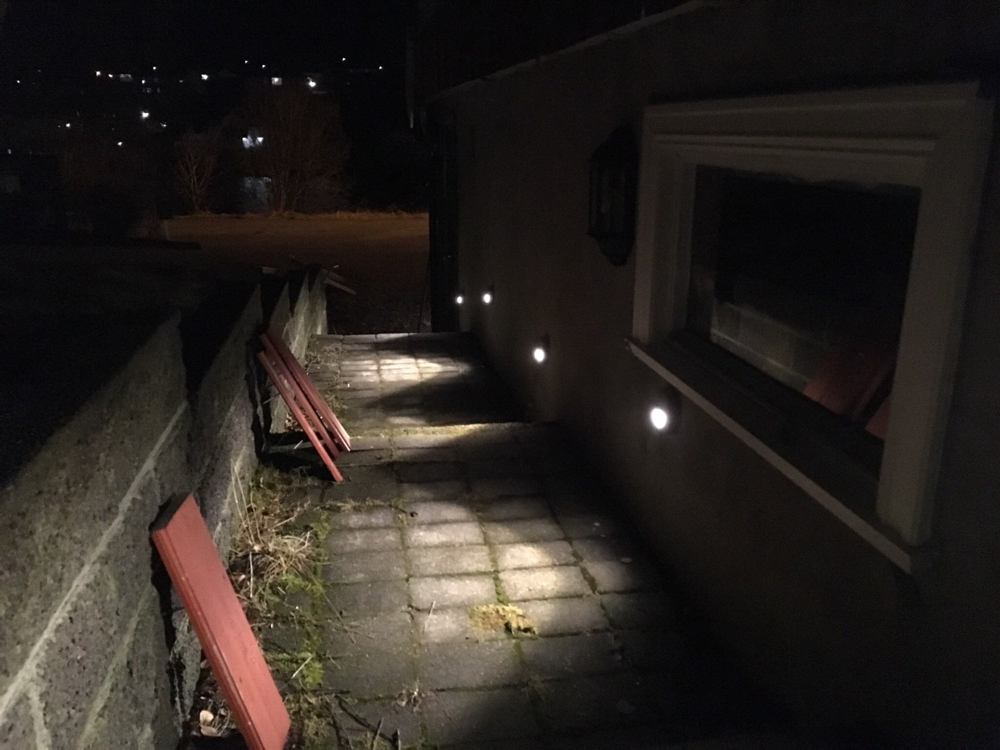 Må nok prøve meg frem, de skal jo ikke lyse opp hele plassen, men markere muren og fremheve linjene i kjøre-/gangadkomst.