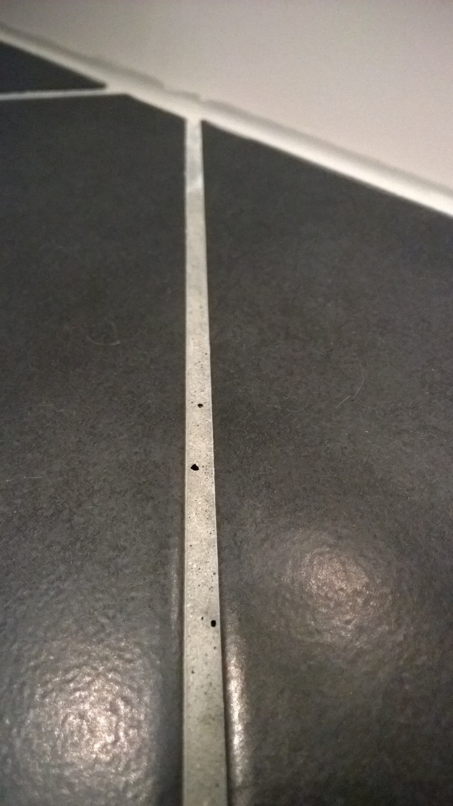 Punkt nr 1 er at det er kommet små hull i fugene mellom flisene, dette regner jeg med at de fikser og er vel enten luft eller for mye vann i blandingen. Dette blir gått over en gang til.