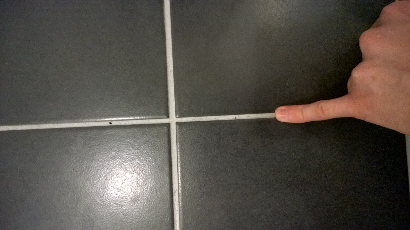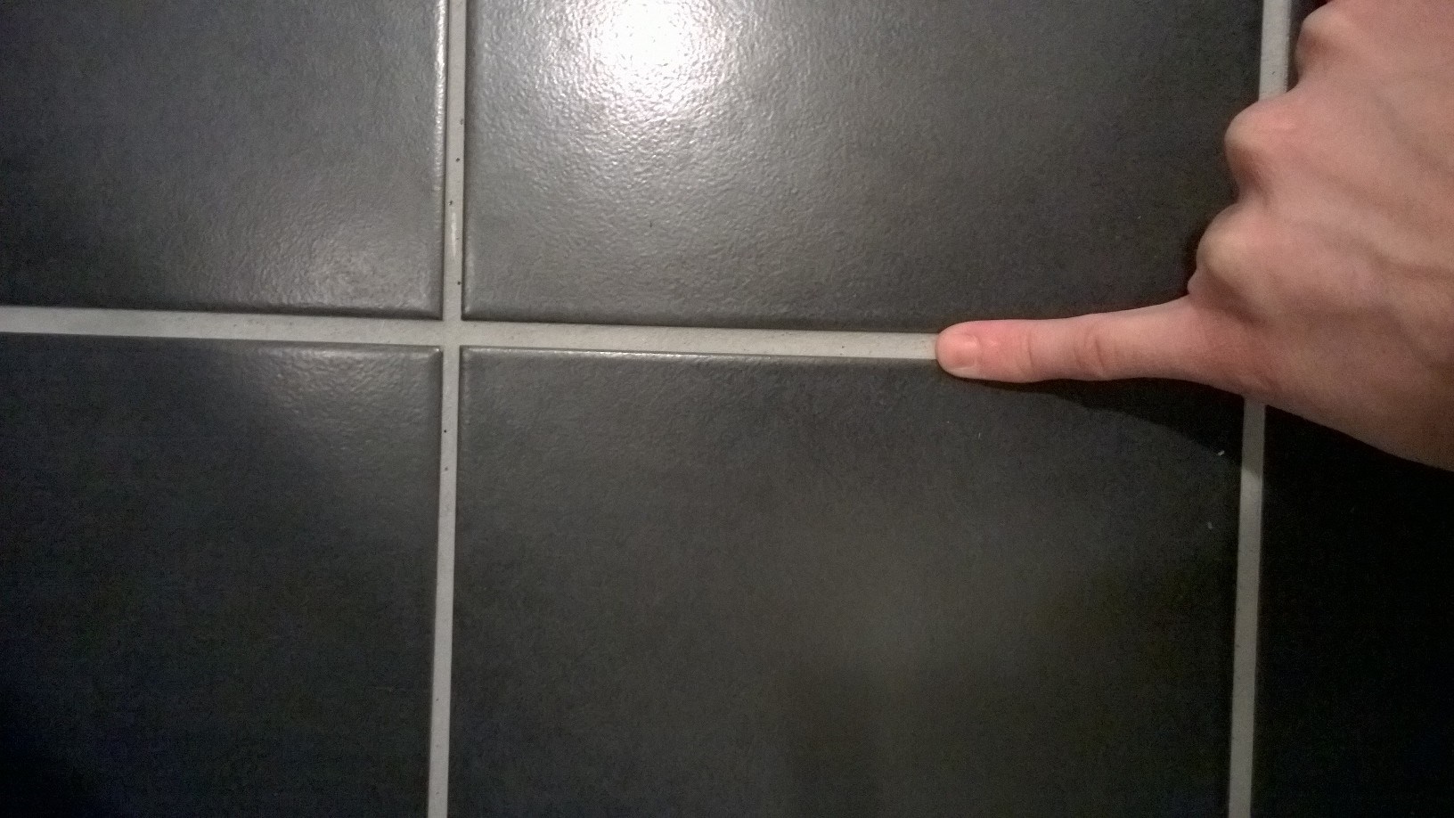 (Jeg har laget noen fuger for flere år siden som varierte i tykkelse, disse flisene skal nå bort og jeg gjør det en gang til. Skikkelig denne gangen. Avviket er ikke så stort som hos deg)