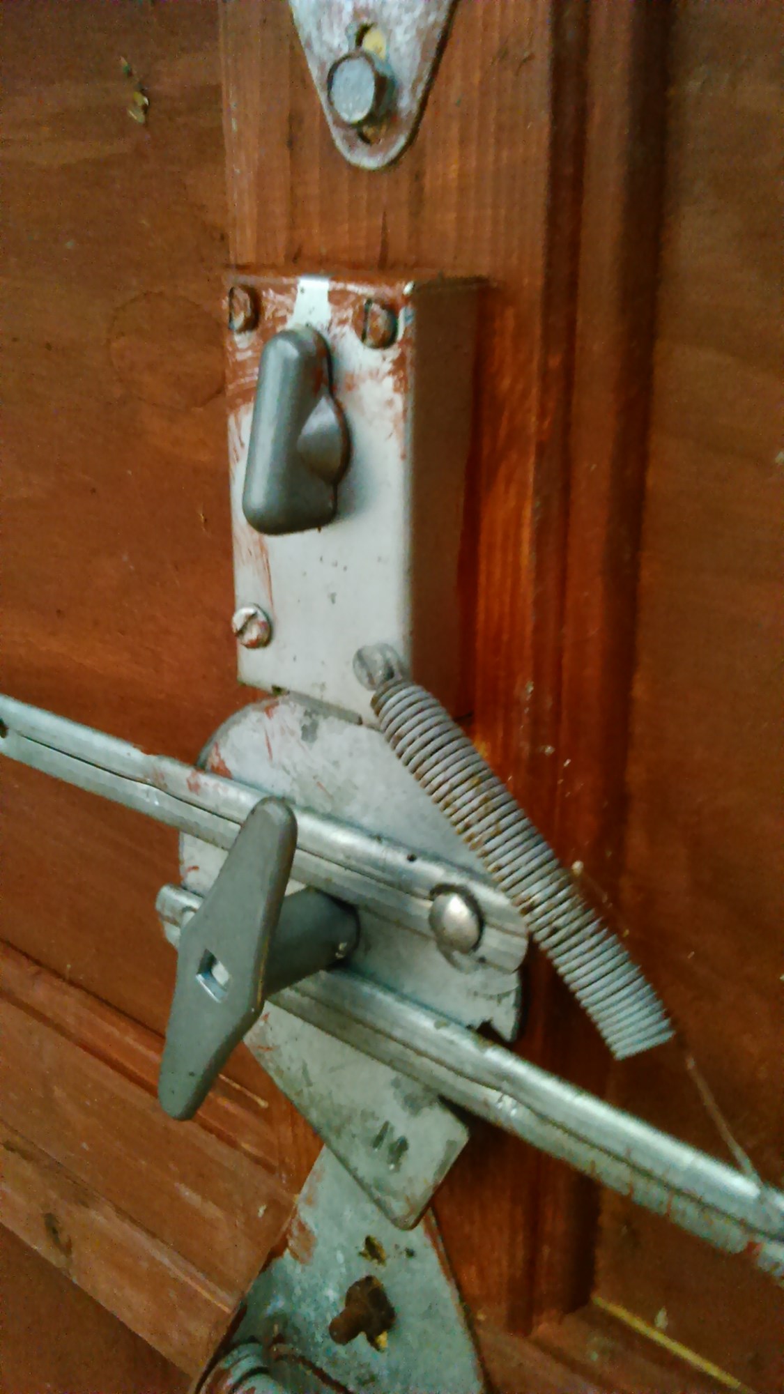 Dette er en garasjeport mange tiår gammel. Jeg vet ikke hvor den er kjøpt.