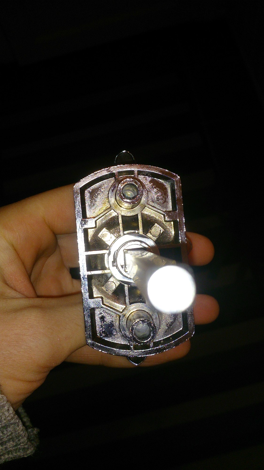 Når dette var gjort skulle jeg feste låsen til døren, men det er jo ingen gjenger i festepunktene på selve garasjeportlåsen.