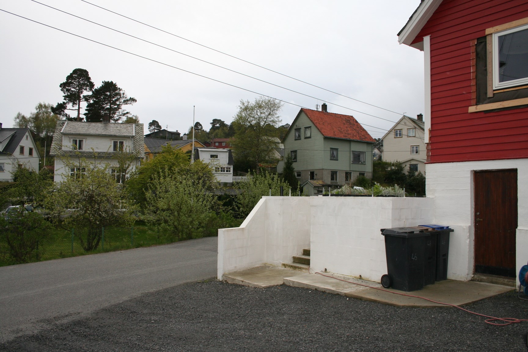 Det blir i tilfelle et lavt trinn nede, men har lagt steinen løs der no for å teste, og det skal ikke vær noe problem. Trappa er i dag belagt med skifertrinn. Hadde tenkt å ha 30x60cm skifer i bunn også, men det er 50% billigere med stein enn skifer. Har endel andre ting som også skulle vore steinagt, så det minker på pengene. Det vil på sikt komme asfalt som holder steinen på plass, men det blir ivertfall ikke i år..