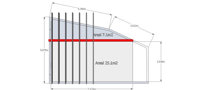 Det kan godt være at jeg har regnet noe feil. Jeg tok hele arealet av taket, men det er ikke hele arealet somblir understøttet av bjelken. Jeg tenkte at da var jeg i hvertfall på den sikre siden...