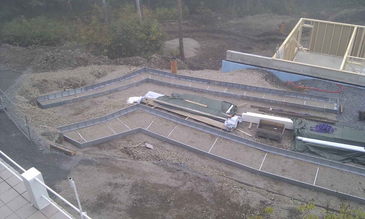 Skal snart til å støpe bankett for grunnmur, denne skal være 600 bred, og 200 høy.