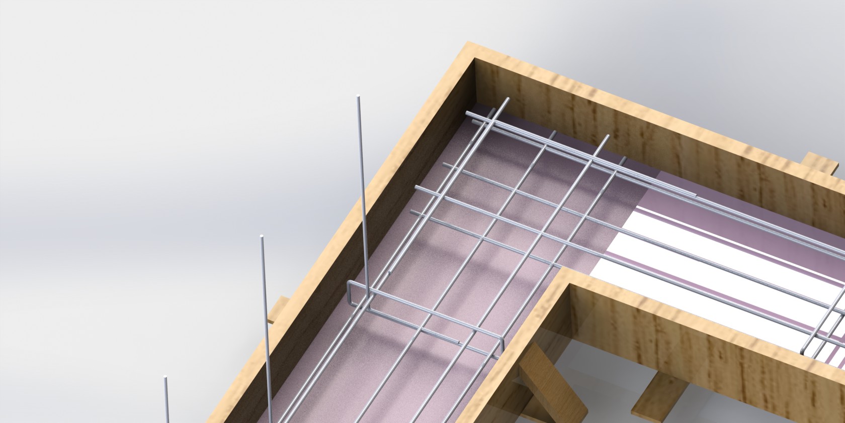 Forskalingsbord under ligger med cc200, og vertikal armering med cc60.