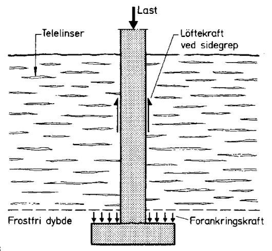 Det ble nevnt 110cm dybde. Det er ikke telefri dybde de fleste steder i landet. Men kan telesikres ved å legge markplater i 1,5m diameter rundt pelene like under overflaten.