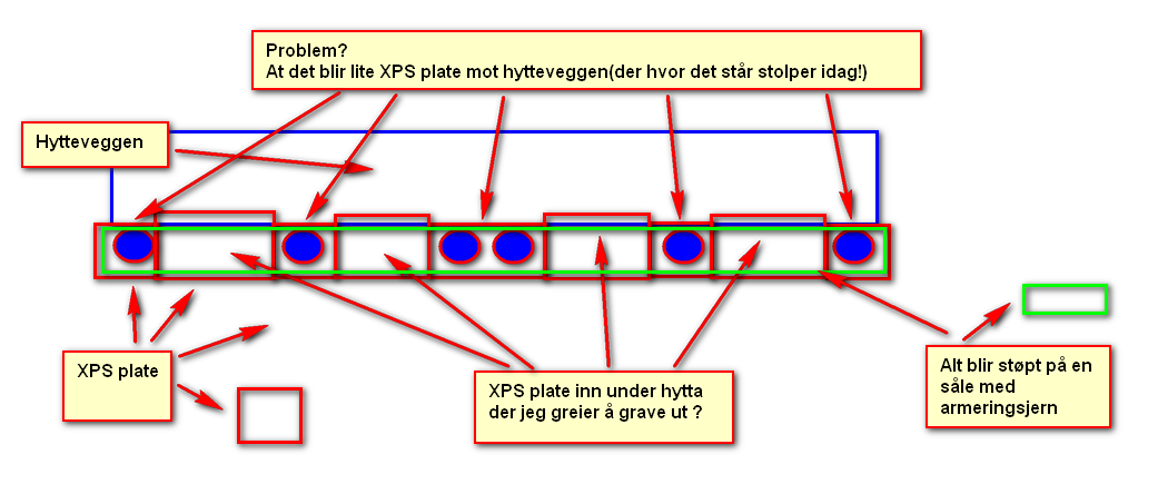 Eller skulle jeg gjort noe slikt (men hva er under en slik støperekke ? jeg skulle lagd en slik helt inntill hytta):