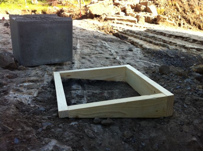 Jeg holder på med terrasse og skal støpe fundamenter for å sette opp systemblokk sine pilarblokker.