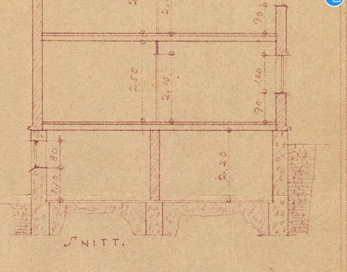 Min tegning fra ‘87 er omtrent som hos deg, men her fortalte selger at kjelkermurene står oppå