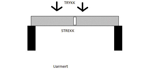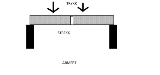 Det som er poenget her er at ved å armere betongen sørger man for at betongen får gjøre det den er best til, nemlig å stå i mot trykk, mens stålet tar seg av strekk-kreftene.