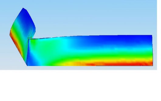 Trodde jeg først. Men så tegnet jeg den og spurte computermaskinen hva den tror. Etter summing og blinking med lysene kom det ut som vises under. Nå er det selvfølgelig som alltid med disse dingsene: skit inn gir skit ut. Så det er meget mulig jeg har gitt feil forutsetninger. Klyper med salt er muligens på sin plass. Fremstillingen er forøvrig enormt overdrevet. Rødt er høyest stress, blått er minst.