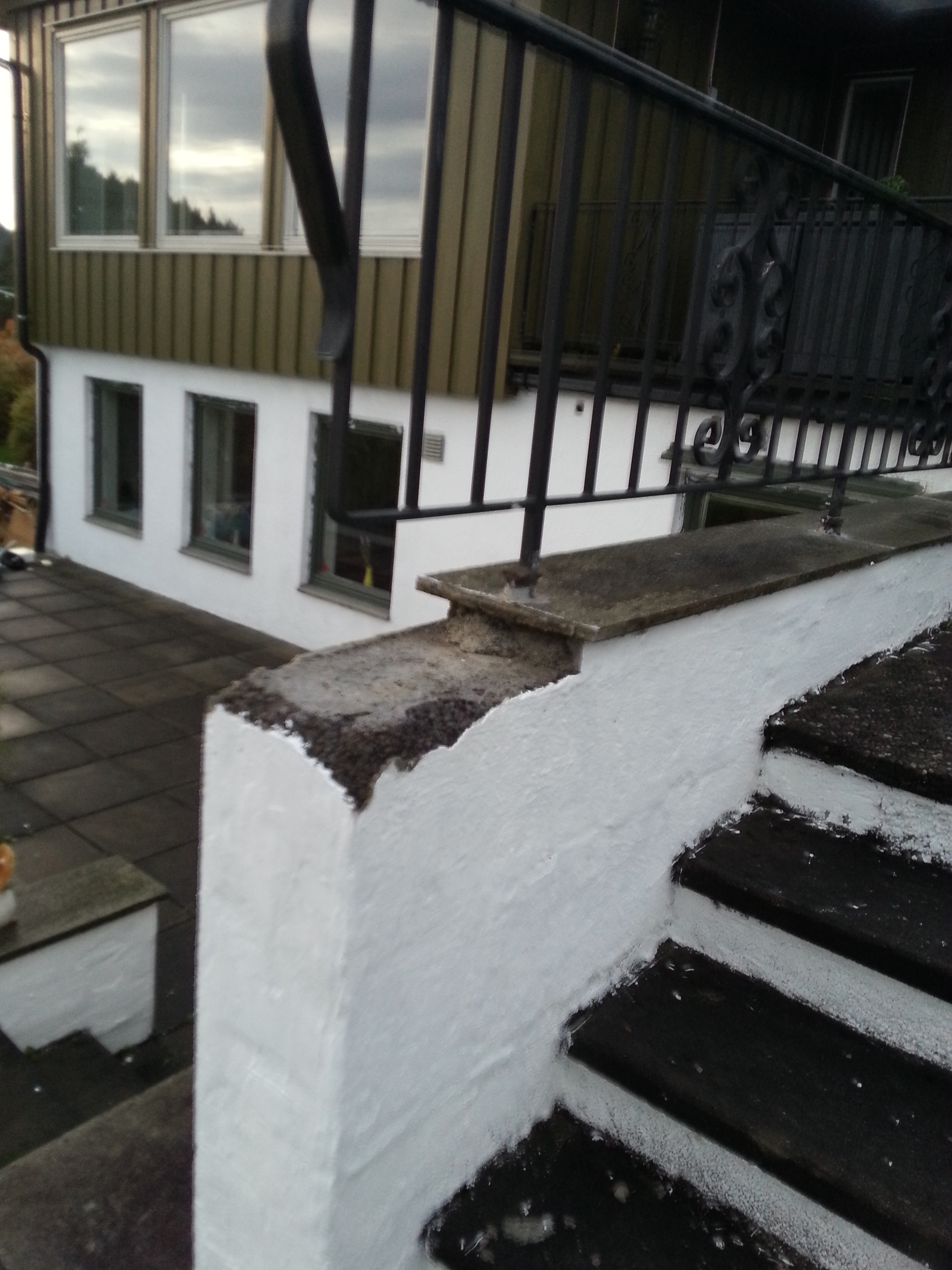 Har både flislim og murpuss, og vurderer å blande disse i hverandre for å bygge første høyden. Andre del av prosessen vil være å lime fast flisa igjen på forhøyningen. Tredje og siste del vil være å pusse med murpuss og male.