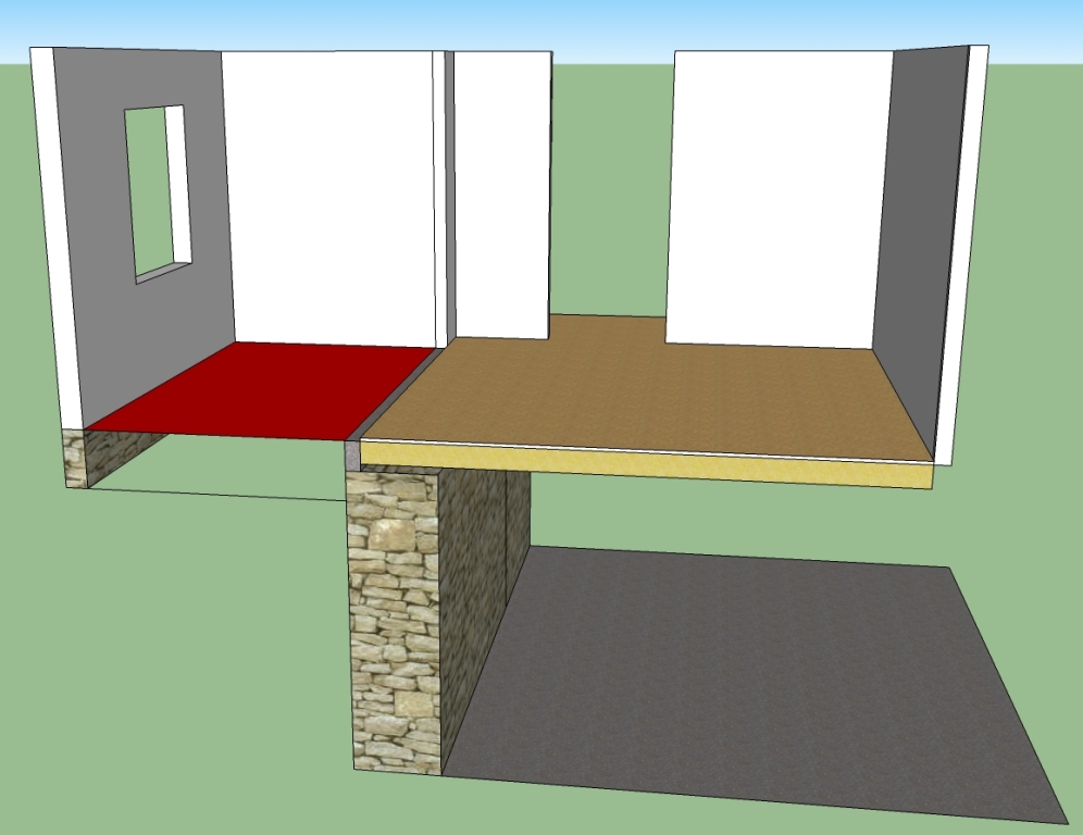 Det fjerde problemet er at på delen med kjeller under er det allerede lagt nytt bjelkelag og spongulv.