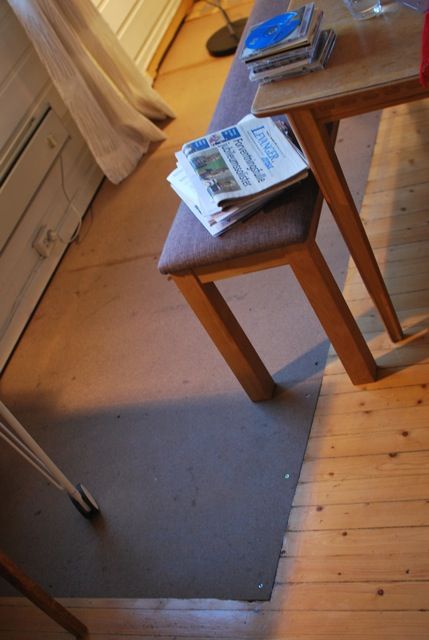 Har tettet et trappehull i stua med gulvspon, og skal nå til å begynne å jevne ut gulvet for legging av nytt gulv. Har vurdert å legge huntonitt eller kryssfinér, men siden det er litt forskjell på høyden (ca. 8-9 mm på sidene, 4-5 mm midt på) tenkte jeg på flytesparkel e.l