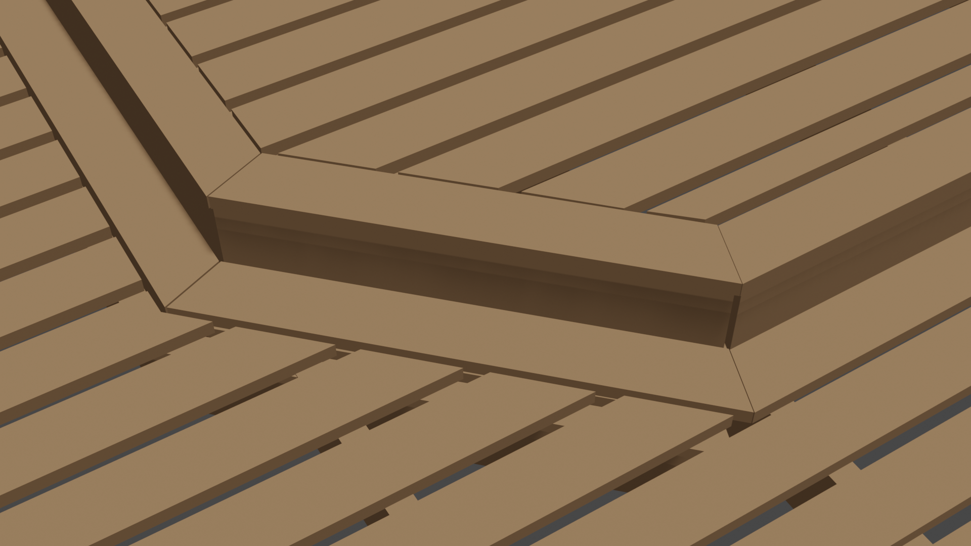 Så lurte jeg også på hvordan jeg sikrer at det går opp i hele terassebord både på utsiden og innsiden av den vinklede delen av terassen. Som dere ser på bildene vil jeg måtte kappe det ytterste bordet for å få det til å gå opp, og på versjonen med ramme må jeg kappe en rar vinkel i det ene bordet. Men det er kanskje å forvente? Eller finnes det smarte triks her?