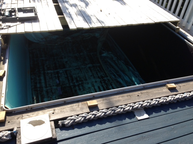 Etter at jeg åpnet det så var det naturligvis noe vann i den, men til min store skrekk når jeg hoppet nedi så var bunnen flytende, virket som større isoporflater eller lignende og det var vann under.