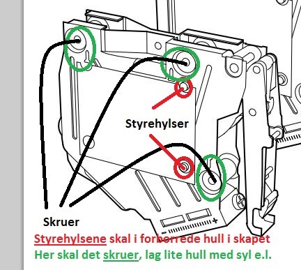 Jeg skal bytte til nye henglser (Utrusta), men hullene på mitt gamle Faktum skap passer ikke og jeg må borre nye. Er det noen som kan gi meg målene på de tre øverste hullene jeg trenger for å feste hegslet?
