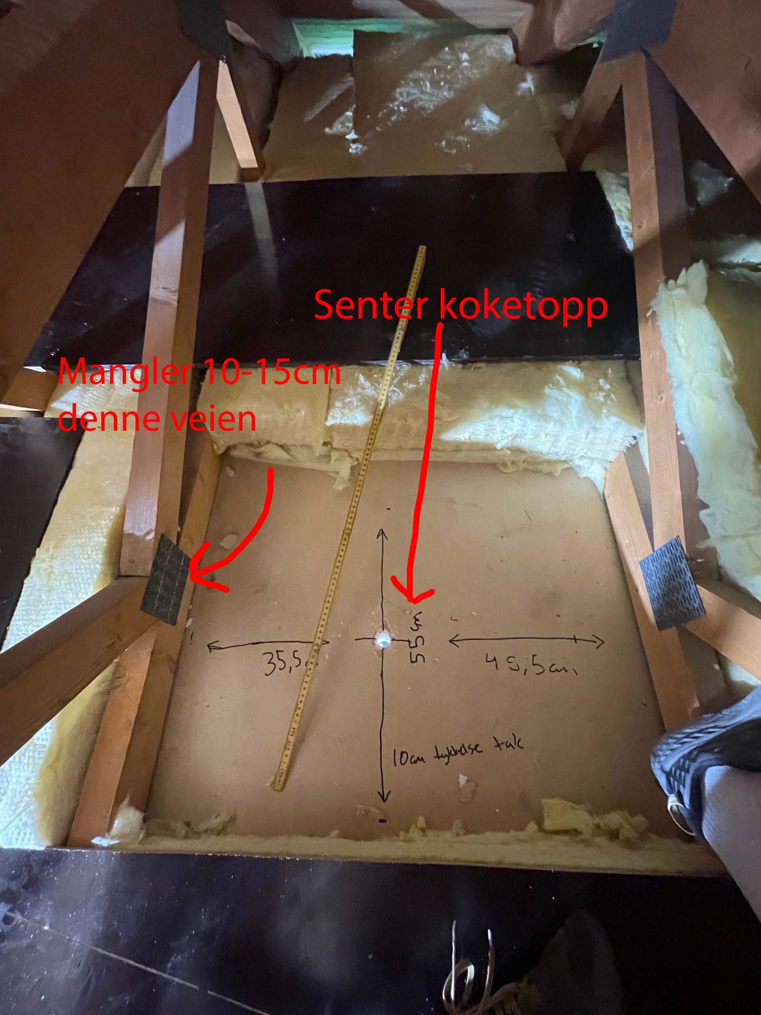 Så en type som denne kunne i teorien gått. Selve innsuget er L90cmxB44cmxH3,6cm. Da kan den felles inn i taket, siden taket er 9cm tykt. Og motoren har en bredd på 63cm og kommer da mellom bjelkelaget som er 80cm.