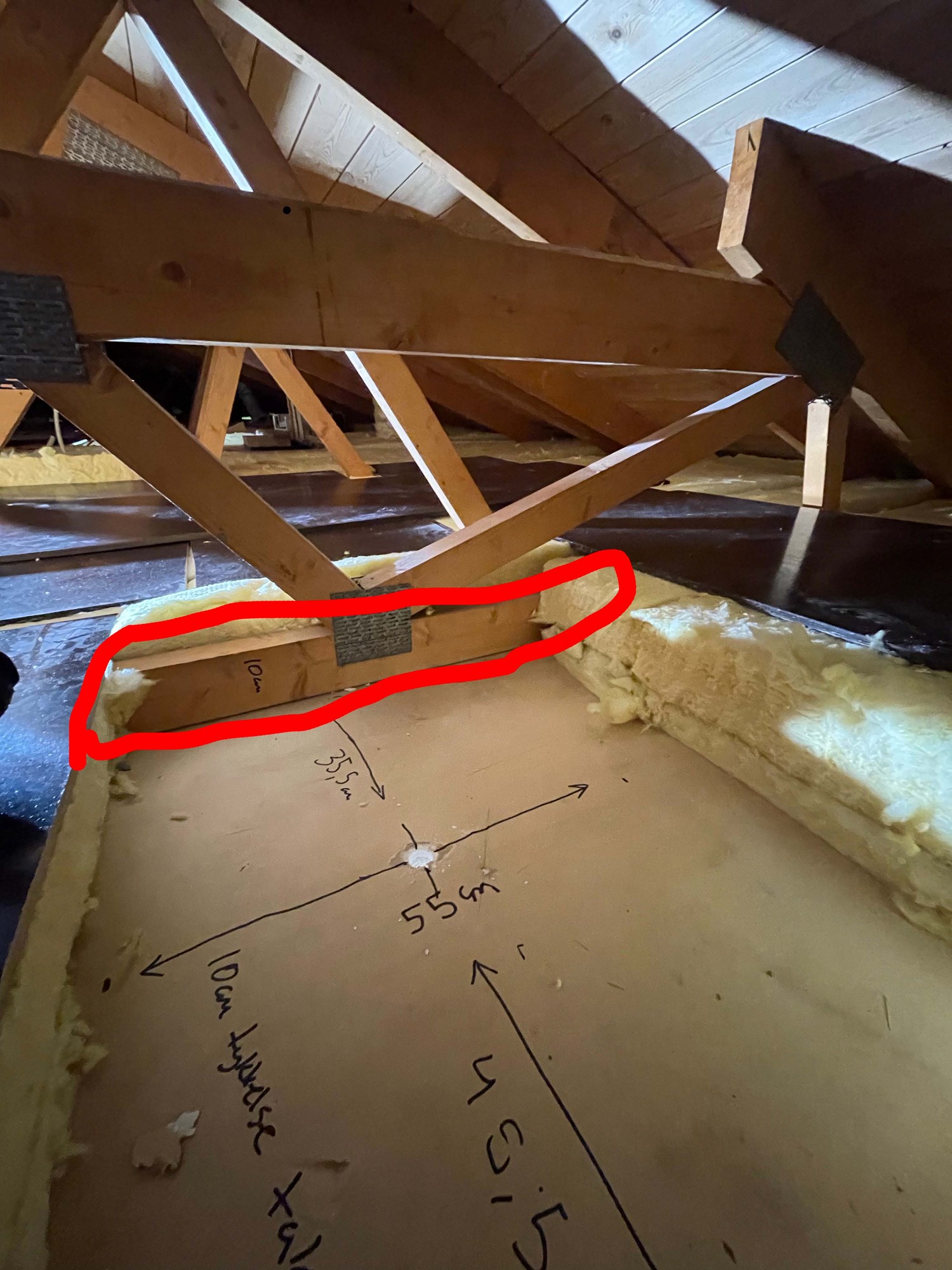 • Mellom takstolene er det 80cm, og de fleste innfelte ventilatorene er 88cm og oppover i bredde, så da blir jeg nødt til å skjære ut den ene veien. Kan dette la seg gjøre? Hvordan bevarer jeg styrken ved å skjære bort den delen markert på bilde?