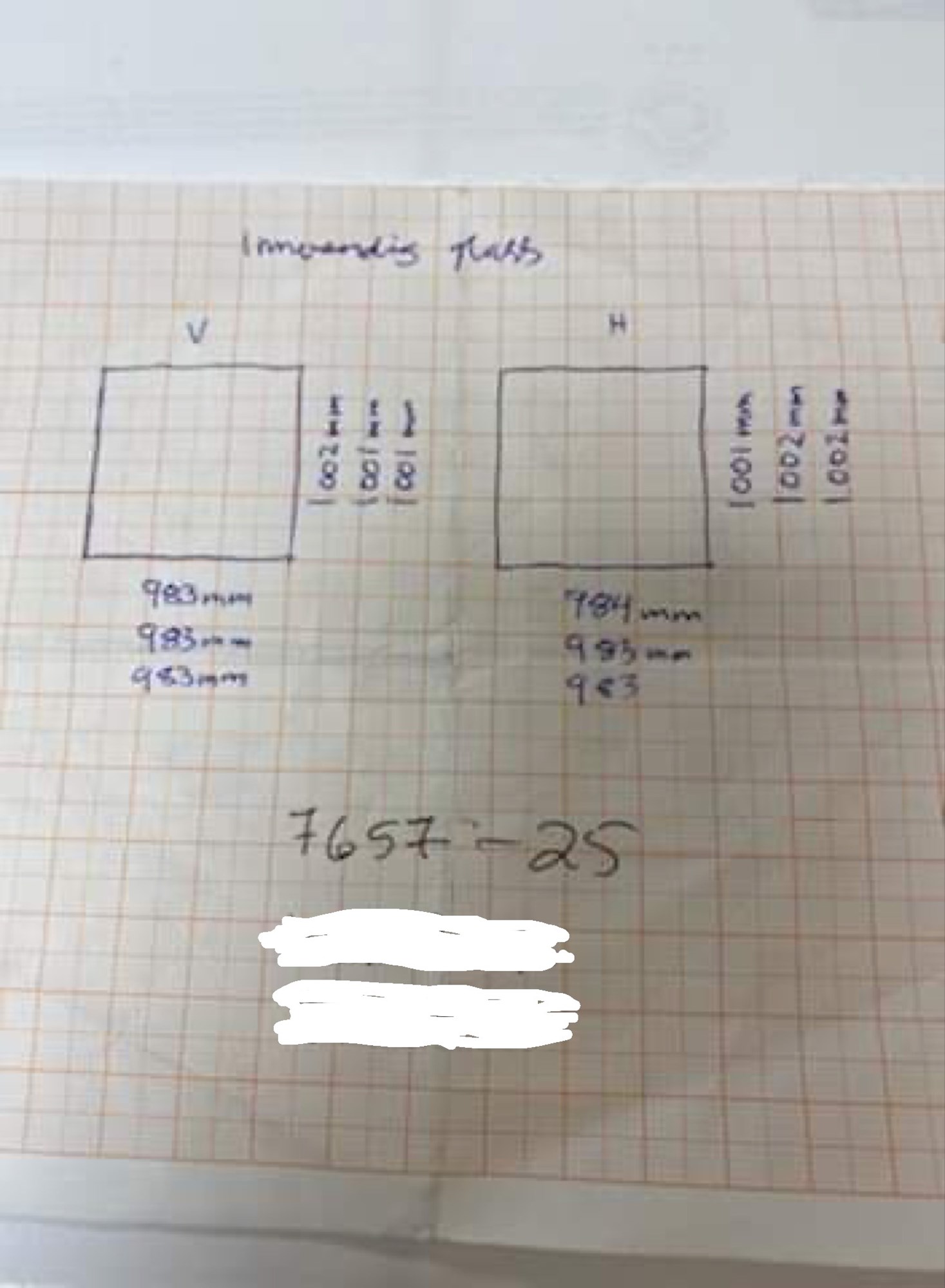 Ja det kan virke slik. På skissen så står det kun mål og ikke hva som er høyde eller bredde. Da jeg sa hva målene var så skrev hun det opp på en lapp i tillegg også. Denne lappen greier hun ikke å finne i ettertid.