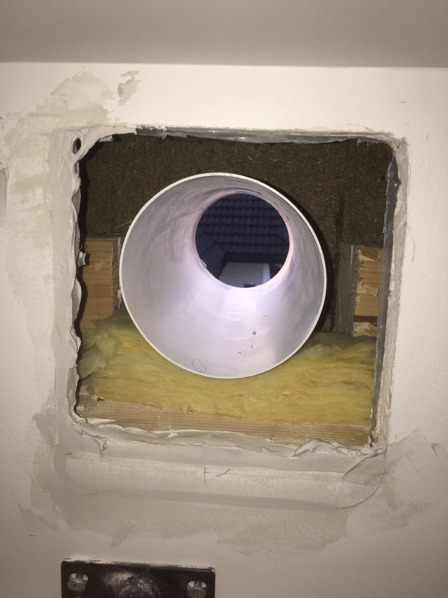 Jeg har et lite problem. Etter mye kutting fant jeg ut at en standard 6x6" ikke passer i veggen. Ytter hatten blir helt blokkert.